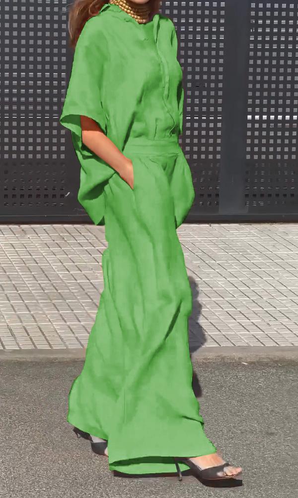 NEW 🔥 Women's Cotton Two-Piece Oversized Drawstring Sweatshirt Wide Leg Sweatpants Casual Set