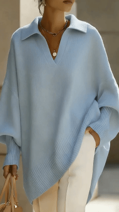🎄 New Arrivals🔥 Women's Solid Color V-neck Long-sleeved Casual Loose-fitting Knitted Pullover Sweater